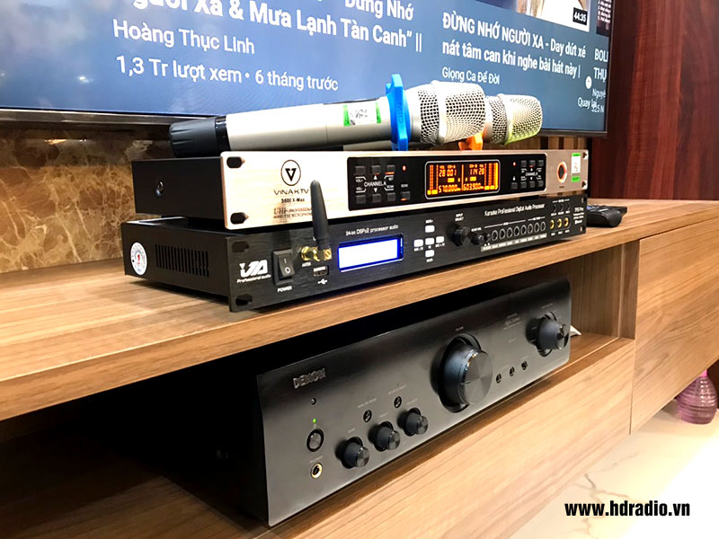 • Có thể chuyển đổi Hát karaoke ấn tượng với hệ thống mic và vang số VinaKTV, TF được các kỹ thuật viên hdradio setup hoàn hảo