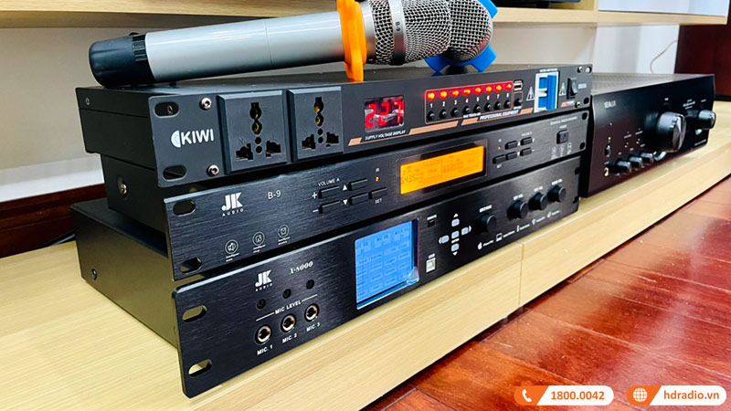 • Hệ thống Vang số JKaudio X8000. giúp bạn dễ dàng điều chỉnh âm thanh để hát hay như một ca sĩ chuyên nghiệp và đặc biệt không rú rít