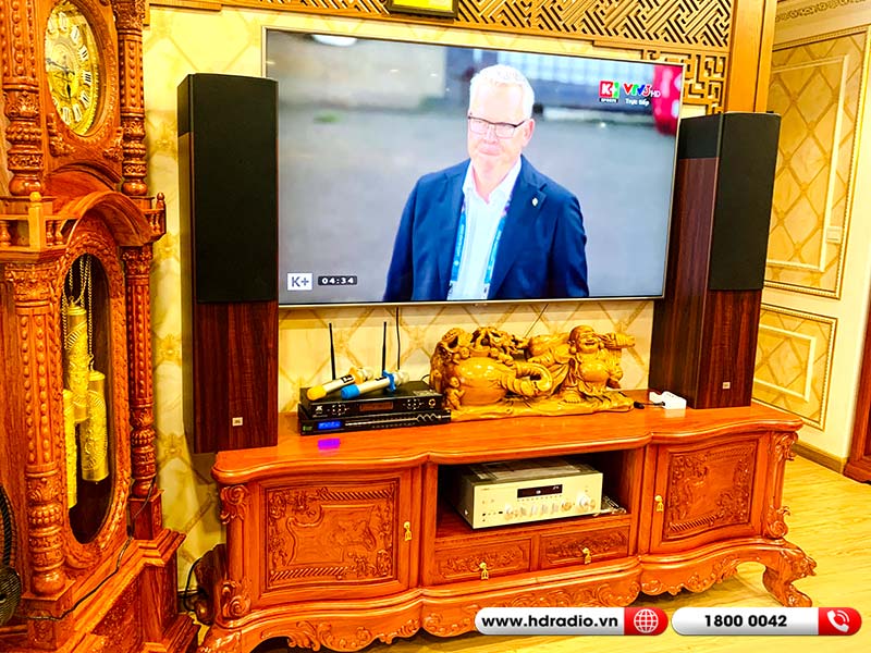 Cùng chiêm ngưỡng vẻ đẹp các sản phẩm trong bộ âm thanh nghe nhạc và hát karaoke của phòng khách của anh Tuấn