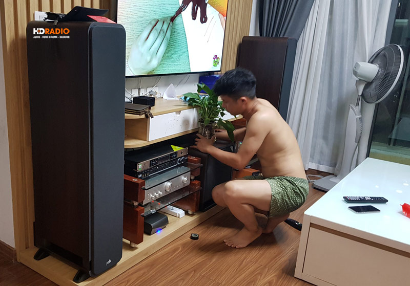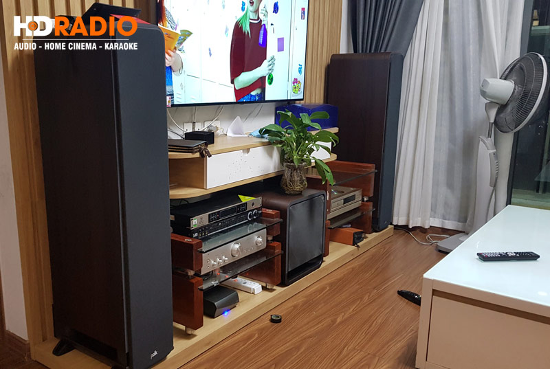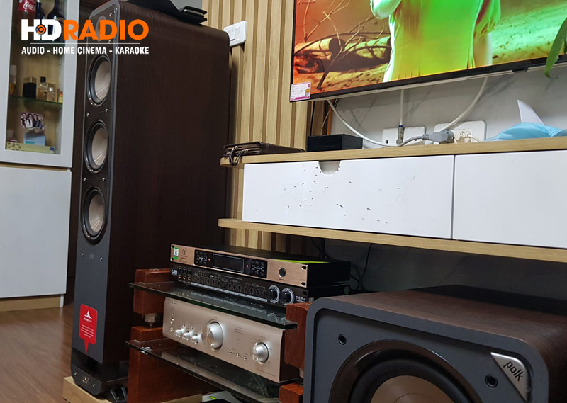 Đây là hệ thống âm thanh ấn tượng, cho âm thanh toàn dải chi tiết, hát karaoke hay, dễ dàng với những sản phẩm chính hãng mang thương hiệu nổi tiếng thế giới bao gồm: Polk Audio (USA), DENON, VinaKTV, JA được các kỹ thuật viên HDRadio setup hoàn hảo và hướng dẫn kỹ càng cho anh Cường. Đáng chú nhất là cặp Loa Polk Audio Signature S60 cho chất âm đỉnh cao vô cùng ấn tượng