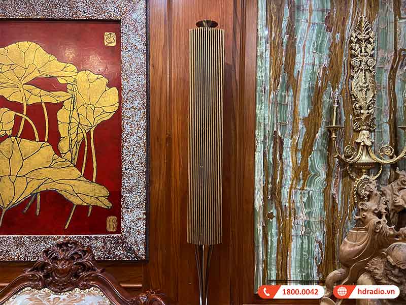Nổi bật trong hệ thống âm thanh của anh Hùng là sự hiện diện của cặp loa Bluetooth đình đám, Loa đứng nghe nhạc Hi-Res đỉnh cao của hãng Bang&Olufsen - B&O Beolab 18 với nhiều công nghệ âm thanh độc quyền được tích hợp cung cấp âm thanh Hifi vô cùng chất lượng kết hợp với thiết kế ấn tượng từng đạt giải thưởng CES Best of Innovations 2014, cực kỳ hài hòa, phù hợp với không gian phòng, đồng thời mang lại chất lượng âm thanh đỉnh cao, đáp ứng trọn vẹn nhu cầu nghe nhạc của anh Hùng.