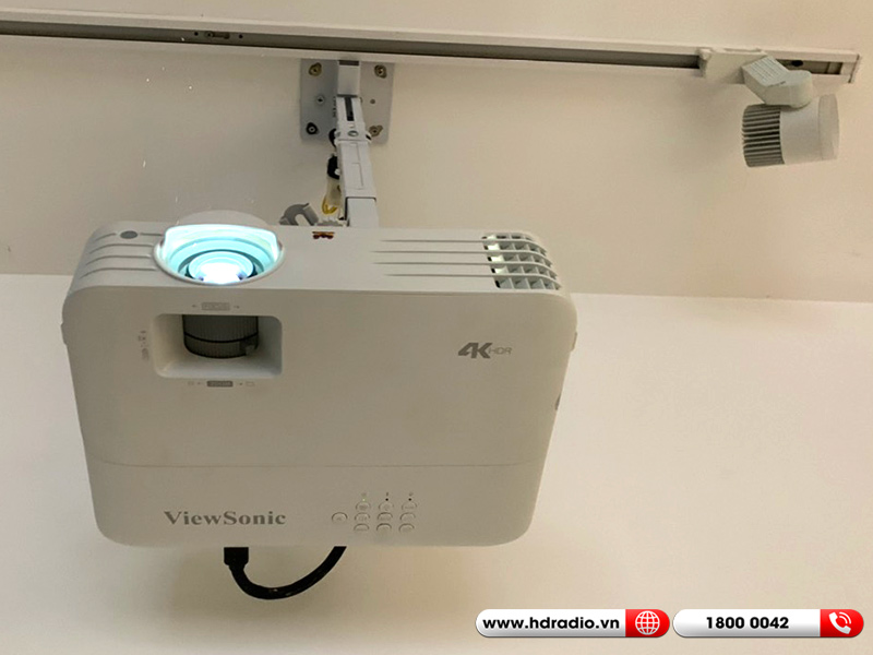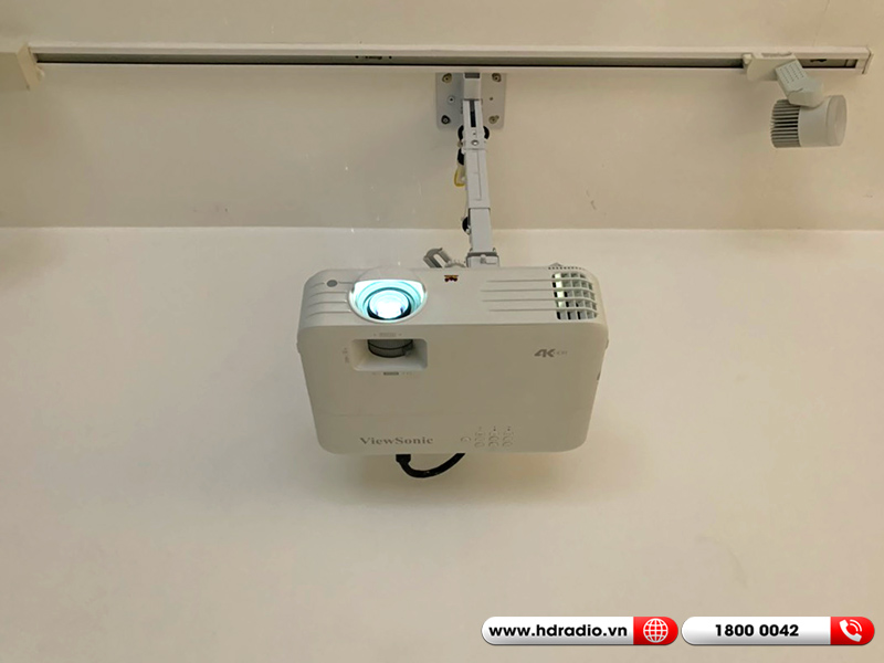 Nhằm tối ưu không gian phòng, máy chiếu được lắp bằng giá đỡ gắn cố định lên trần nhà, vừa đảm bảo thẩm mỹ và an toàn.