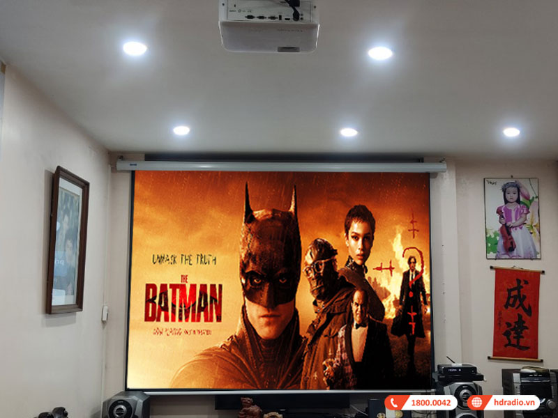 Lắp đặt hệ thống trình chiếu chất lượng giá chỉ hơn 23 triệu đồng cho anh Oanh ở Đống Đa, Hà Nội (ViewSonic PX703HD, Màn chiếu Dalite 120 inch)