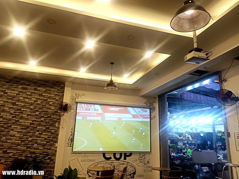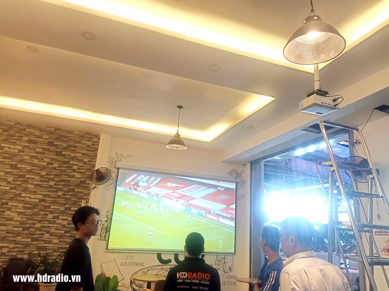 Đáp ứng nhu cầu có một bộ máy chiếu, màn chiếu bóng đá chất lượng giá rẻ cho quán cafe nhỏ của anh Phong ở Quận 6 - TP. Hồ Chí Minh, ngày 18/3/2021, HDRadio đã lắp đặt và setup thành công hệ thống trình chiếu dành cho quán Cafe với các sản phẩm trình chiếu chính hãng Viewsonic kết hợp màn chiếu chất lượng điện giá rẻ ấn tượng.