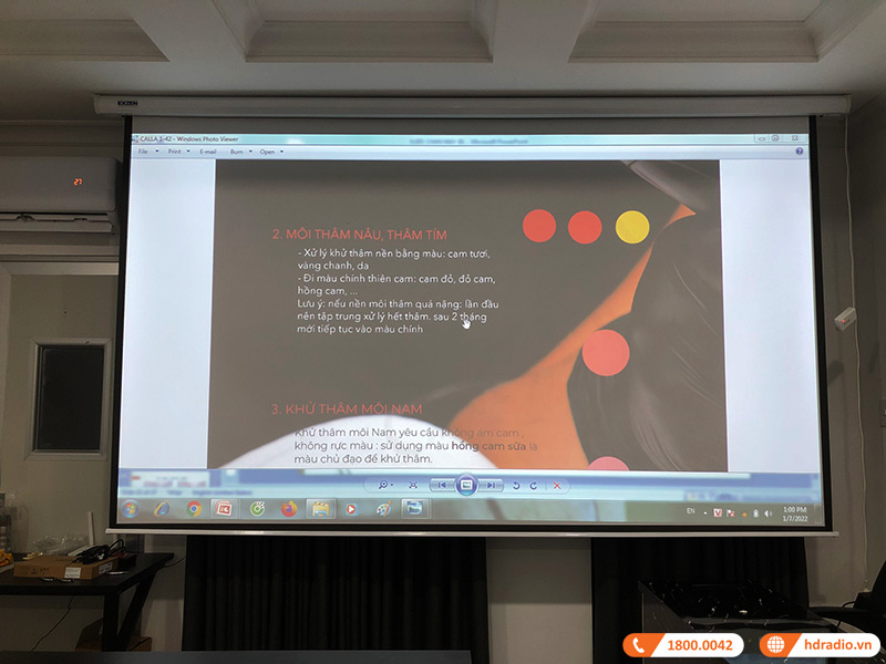 Luôn đem đến các giải pháp trình chiếu chất lượng, vừa qua, HDRadio đã hoàn thành công trình lắp đặt trọn bộ máy chiếu phòng học cho chị thảo My ở quận 3, Sài Gòn  (Máy chiếu Viewsonic PX703HD, màn chiếu điện EXzen 150 inch).