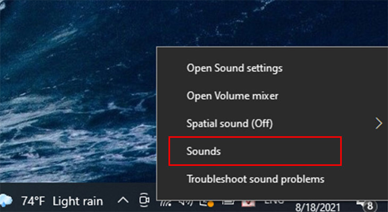Bước 1: Click chuột phải vào biểu tượng loa trên thanh Taskbar > Chọn Sound.