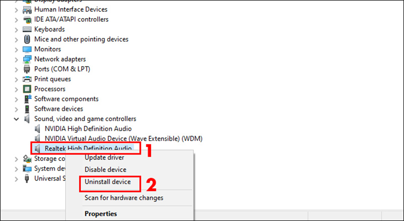Bước 3: Click chuột phải vào Realtek Audio > Chọn Uninstall device.