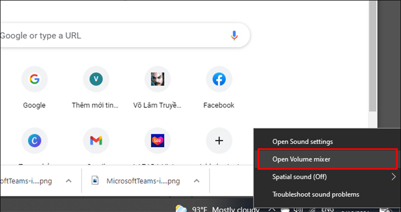 Bước 1: Click chuột phải vào biểu tượng loa trên thanh Taskbar > Chọn Open Volume Mixer