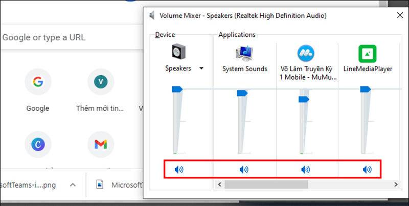 Bước 2: Kiểm tra loa và các chương trình đang chạy có ở trạng thái tắt âm thanh hay không. Nếu có hãy bật âm thanh bằng cách nhấn vào biểu tượng loa.