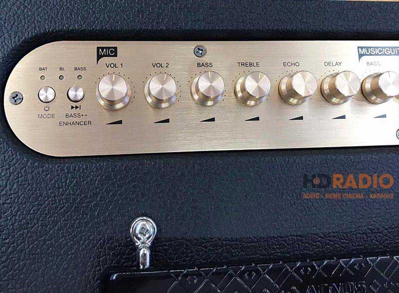 Chiếc loa di động này tối ưu hóa khả năng sử dụng bằng hệ thống bảng điều khiển được bố trí ở mặt trên với đầy đủ các nút điều chỉnh đúc nhôm phay nguyên khối sang trọng như âm lượng, Bass, Treble, Echo...được bố trí rõ ràng, khoa học, từ đó bạn có thể làm chủ thiết bị của mình thật đơn giản chỉ với một vài thao tác bằng tay đơn giản.