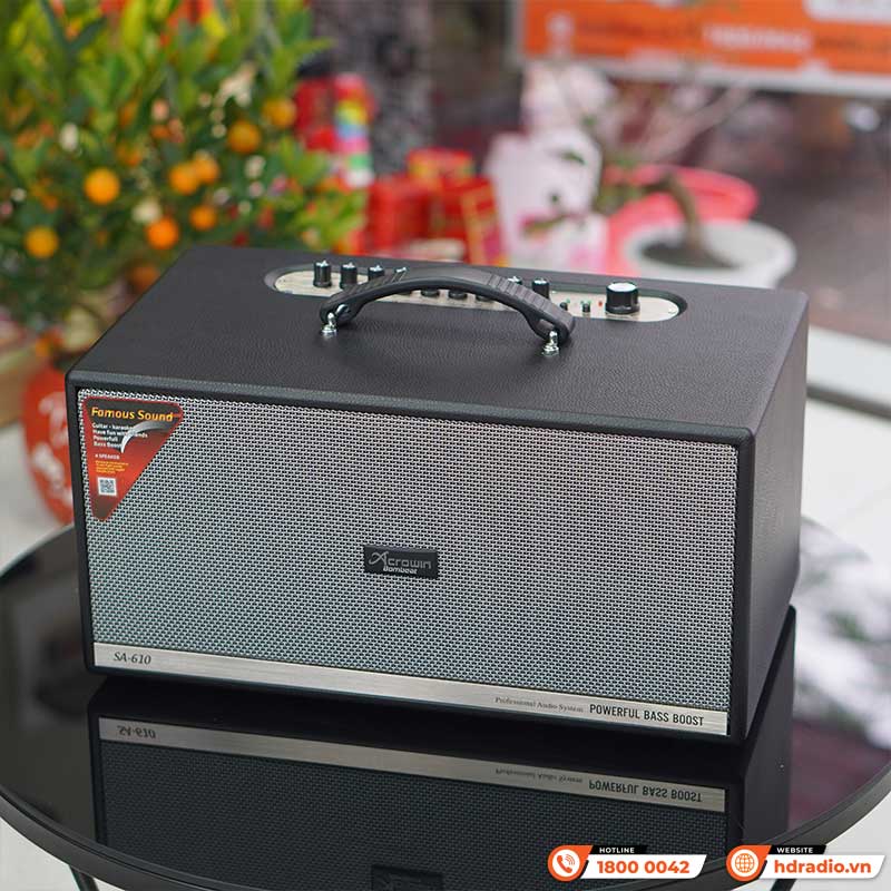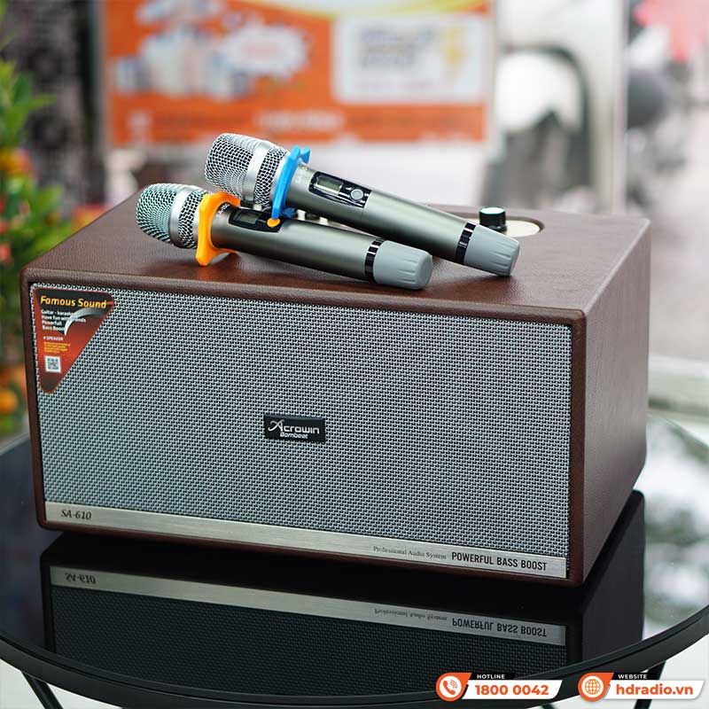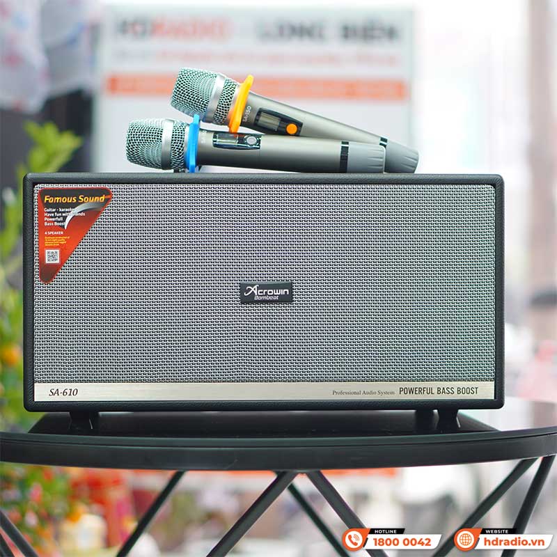 Chỉ với chiếc loa xách tay Acrowin SA610 nhỏ bọn và cặp micro không dây đi kèm là bạn đã sở hữu 1 dàn karaoke thu nhỏcho riêng mình với thiết kế và chất lượng âm thanh đảm bảo.