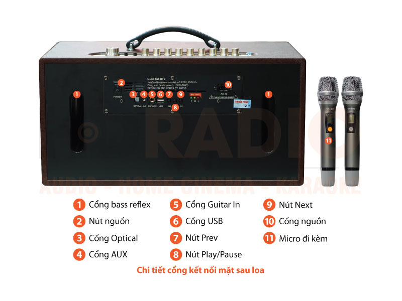 Đánh giá Loa Acrowin SA810, Bass 16cm, Công Suất 150W, Bluetooth, Optical, Kèm 2 Tay Mic