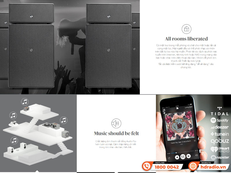 DrumFire II cho phép người dùng nghe nhạc từ nhiều nguồn khác nhau như Spotify Connect, Apple Airplay và Bluetooth tạo ra sự linh hoạt trong việc lựa chọn và phát nhạc từ các thiết bị khác nhau.