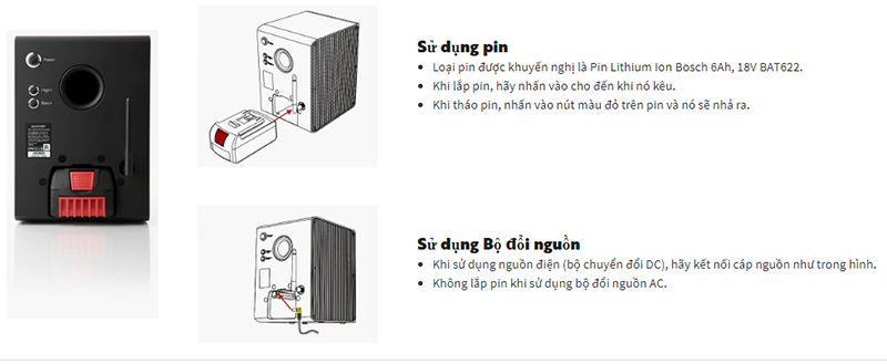 A: Phải mua riêng bộ sạc pin Bosch: Bộ sạc nhanh Bosch Model AI 1860 cv. Thời gian sạc pin 6Ah trong khoảng một giờ.