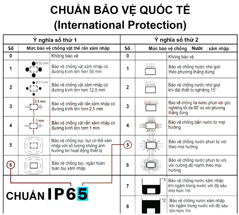 - IP5X: Được bảo vệ chống bụi, hạn chế xâm nhập (Không có chất bám gây hại)
