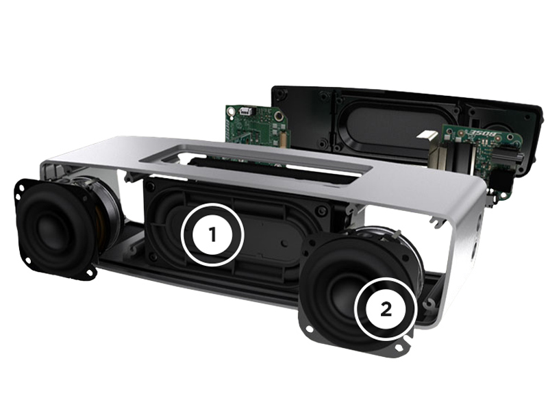 - Âm thanh ấn tượng với sự kết hợp 2 củ loa toàn dải cao cấp độc quyền của hãng bose cho âm thanh chi tiết kết hợp với 1 bass thụ động dạng đường đua ở giữa giúp hỗ trợ âm trầm ấn tượng.