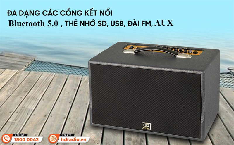 Loa Dalton PS-K8A Luxury được trang bị Bluetooth giúp kết nối nhanh chóng, ổn định với các thiết bị thông minh như điện thoại, máy tính bảng, laptop hay Smart TV. Ngoài ra, loa còn hỗ trợ USB, thẻ nhớ SD, cổng AUX 3.5mm, FM radio và ngõ cắm micro 6.5mm, giúp người dùng dễ dàng linh hoạt trong mọi tình huống sử dụng. Dù bạn muốn hát karaoke, phát nhạc liên tục tại cửa hàng hay nghe đài radio, PS-K8A Luxury đều đáp ứng tốt.