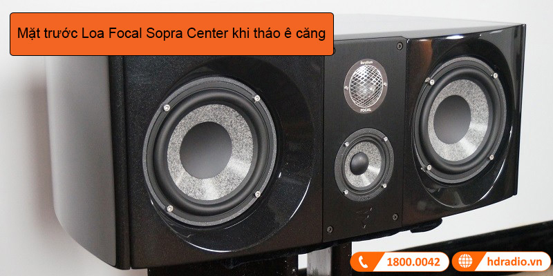 Mặt trước của loa Focal Sopra Center là hệ thống củ loa gồm: 2 củ loa Woofer nằm đối xứng nhau ở hai bên, củ loa Tweeter và củ loa Midrange nằm thẳng với nhau theo trục đứng. Cách bố trí củ loa như thế này đã được hãng nghiên cứu rất kỹ lưỡng để loa được trình diễn được tốt nhất