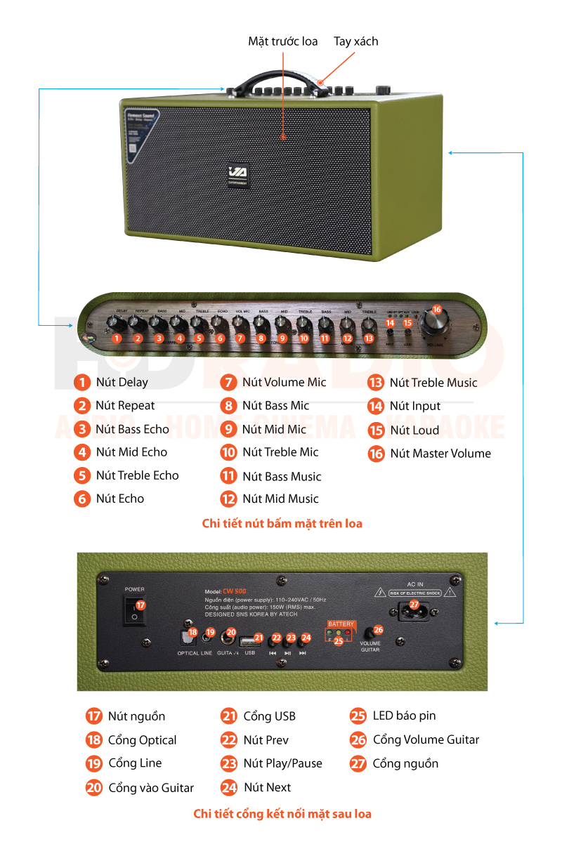 Đánh giá Loa JA CW500, 150W, Bluetooth, Pin 4-6h