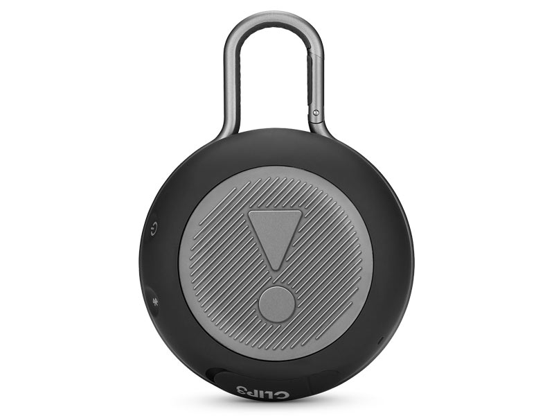 Ở phía trước của JBL Clip 3 có logo JBL ở phía dưới và 3 nút bên trên. Có một nút trung tâm điều khiển phát lại và quản lý cuộc gọi, hỗ trợ giọng nói với nhiều lần chạm. Bên dưới lưới tản nhiệt là củ loa 40mm, công suất 3W cho âm thanh đơn sắc. Dọc theo bảng điều khiển bên ngoài, có một nắp chống nước chứa cổng sặc Micro USB và đầu phụ 3,5mm. Mặt bên cũng được trang bị nút nguồn, nút ghép nối và micro tích hợp để nhận cuộc gọi và sử dụng hỗ trợ giọng nói. Một đế cao su ở bảng điều khiển phía dưới giữ cho loa ổn đinh.