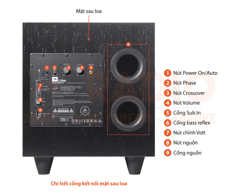 Sub JBL L10cs được thiết kế với cổng kết nối LFE (loại RCA) ở ngay mặt sau của loa, cho phép dễ dàng kết nối với các thiết bị âm thanh khác nhau trong hệ thống âm thanh. Bạn có thể kết nối loa Sub này đến amply nghe nhạc, amply xem phim hoặc bất kỳ thiết bị âm thanh nào có cổng tương thích. Thiết kế này giúp bạn dễ dàng tạo ra một trải nghiệm rạp hát tại nhà tiện lợi và nâng cao trải nghiệm xem phim của mình.