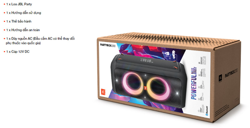 Loa JBL Partybox 200 là một sản phẩm loa bluetooth điện di động hoàn hảo, mạnh mẽ thuộc dòng sản phẩm "Partybox" mới nhất của hãng âm thanh nổi tiếng JBL, với sự kết hợp giữa công nghệ âm thanh độc quyền đẳng cấp của JBL với hiệu ứng ánh sáng tùy chỉnh sống động. Loa được sử dụng nhiều trong các hệ thống âm thanh di động, các buổi party hay thậm chí cài đặt trực tiếp để nghe nhạc trong phòng khách gia đình bạn.