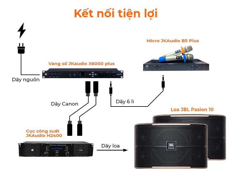 Với độ nhạy 90dB cùng trở kháng 8 ohm, Loa JBL Pasion 10 không kén chọn các thiết bị âm thanh karaoke để phối ghép cùng. Chúng kết hợp tốt với nhiều dòng amply karaoke hiện nay như: Amply Jarguar PRO 506N GOLD AF, Amply Jarguar PA 203N Gold AF,..hoặc các mẫu cục đẩy công suất như: JKaudio H2400, JKaudio H400,..