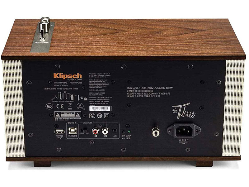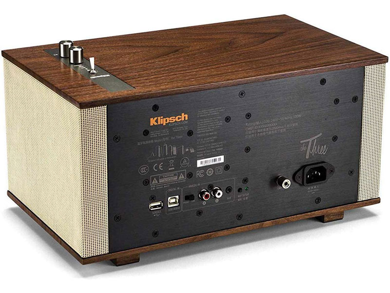 Loa Klipsch The Capitol Three có kết nối Bluetooth v4 với chuẩn aptX và đặc biệt là DTS Playfi – giao thức truyền tải tín hiệu âm thanh chất lượng cao không dây tốt nhất hiện nay thông qua Wi-fi như những loa không dây thông thường. Ngoài ra Loa Klipsch The Capitol Three còn hỗ trợ các giao tiếp cắm dây trực tiếp như Aux (3,5mm), RCA analog, phono và cả USB-B. Trong đó, cổng USB-B cho phép tiếp nhận và giải mã tín hiệu âm thanh số độ phân giải cao, tối đa 24-bit/192kHz.