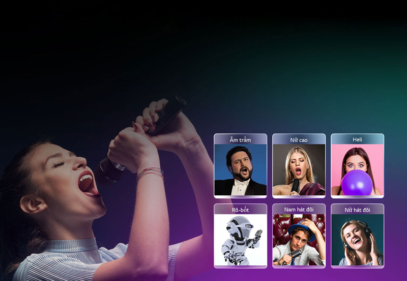 Chế độ Karaoke có: Micro, tiếng vang, bộ thay đổi khóa nhạc, hiệu ứng giọng hát, bộ hủy giọng hát