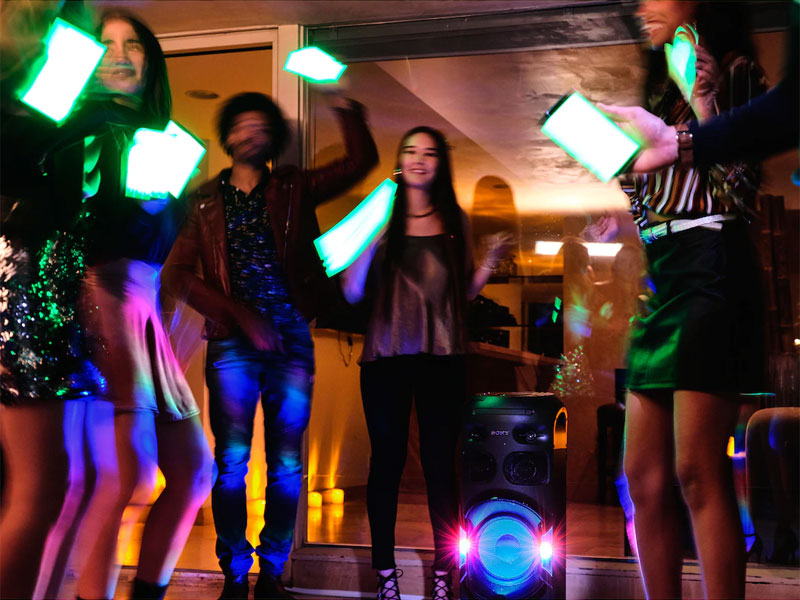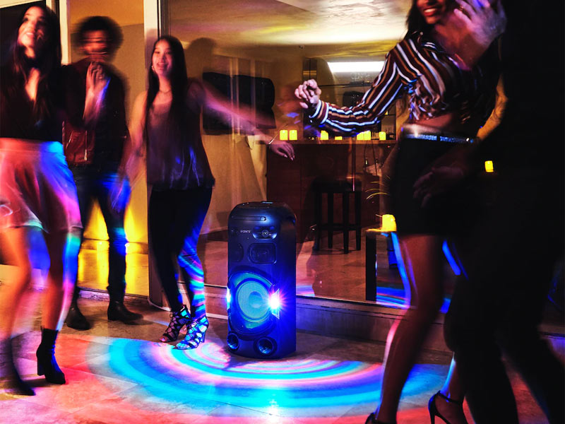 Với ứng dụng Sony Music Center, bạn hoàn toàn có thể điều khiển cài đặt nhạc và âm thanh ngay từ điện thoại của mình với loa SONY MHC-V42D. Hơn thế nữa, ứng dụng con Fiestable còn cho phép bạn điều khiển màu đèn cũng như kích hoạt các chế độ DJ và karaoke trên Loa bluetooth SONY MHC-V42D. Thực hiện thay đổi đèn đơn giản chỉ bằng động tác vẫy cổ tay nhờ tính năng điều khiển chuyển động trực quan.
