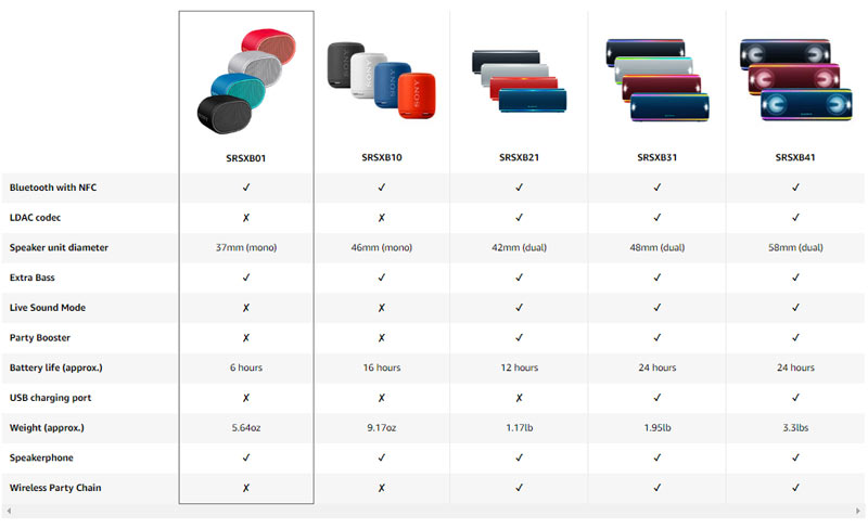 So sánh loa bluetooth mini Sony SRS XB01 với các loa bluetooth trong dòng Extra Bass