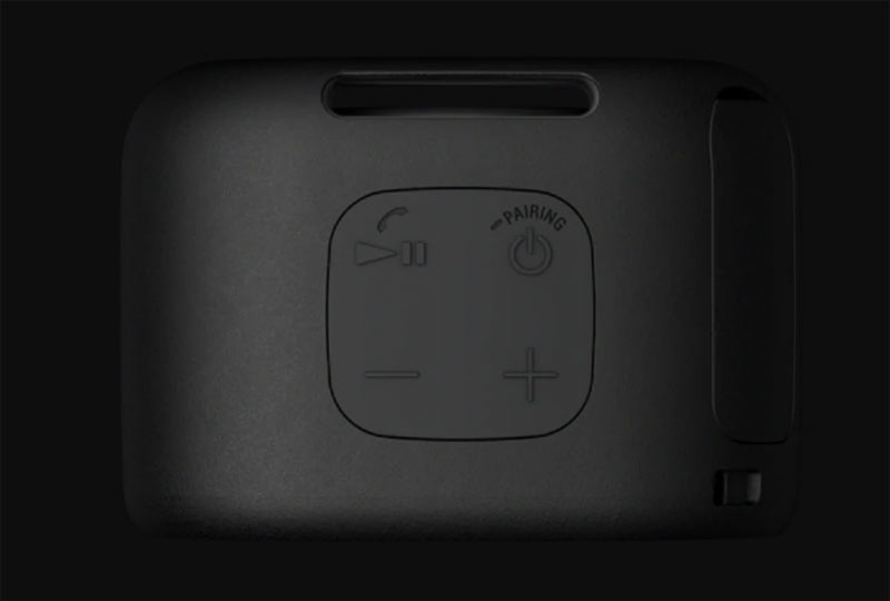 Mặt trên Loa Sony SRS XB01 có đầy đủ các nút điều khiển cơ bản đồng thời phản hồi xúc giác tốt và nhạy như nút nguồn kiêm nút kết nối Bluetooth, nút chơi/dừng nhạc kiêm nhận cuộc gọi và nút tăng giảm âm lượng. Đáy loa có 2 mẩu cao su dạng thanh đó là phần chân của loa, có tác dụng chống rung, chống trượt khi bật loa ở công suất cực đại và tất nhiên để bám bề mặt tốt hơn.