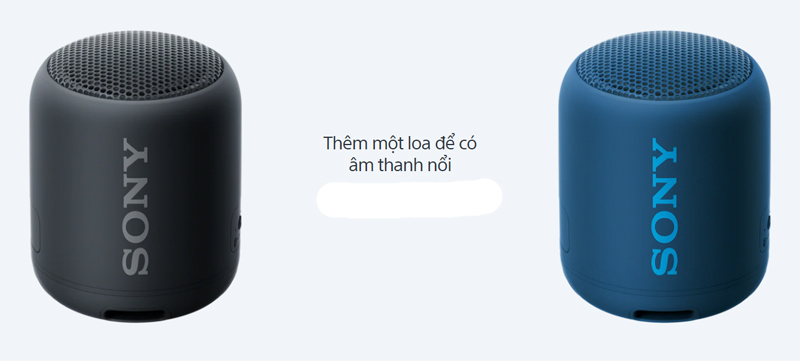 Ngoài ra, bạn có thể ghép nối 2 loa Sony SRS-XB 12 với nhau để tạo thành âm thanh Stereo ấn tượng, thực vậy trên XB12 đó là bạn có thể kết nối 2 chiếc loa lại với nhau và phát cùng một lúc hoặc phát âm thanh ở chế độ loa trái/phải.  Tuy vậy 2 chiếc loa Sony XB12 và XB10 không thể ghép đôi được với nhau.