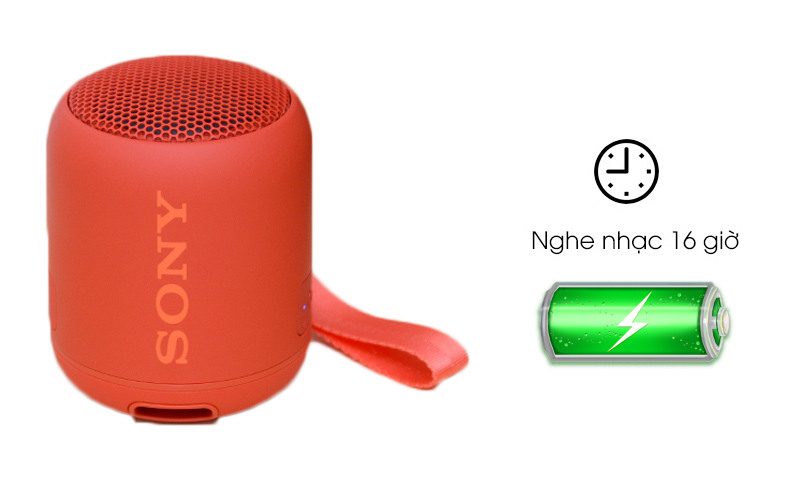 loa Sony SRS-XB 12 sử dụng viên pin có dung lượng cao, đem lại khả năng chơi nhạc liên tục lên tới 16 tiếng - đây được xem là thời lượng pin quá khủng đối với 1 chiếc loa di động mini nhỏ gọn này. Với thời lượng sử dụng này, người dùng có thể thoải mái sử dụng loa Sony SRS-XB 12 mà không phải lo lắng đến vấn đề hết pin khi đang đi du lịch, dã ngoại cắm trại hay những buổi party cùng với gia đình, bạn bè hay người thân của mình.