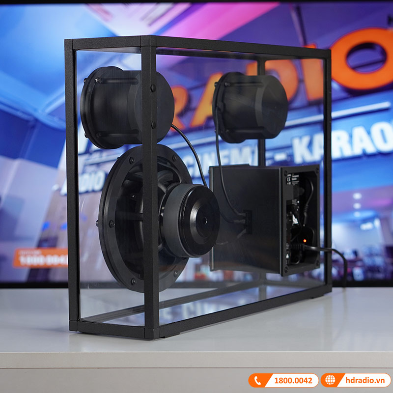 Với thiết kế kính trong suốt độc đáo này, các chi tiết bên trong tấm kính đều được tối giản, từ dây nối, cách đi dây và củ loa đều được sắp xếp gọn gàng và đẹp mắt khi nhìn vào. Đặt biệt, bạn hoàn toàn có thể vừa nghe nhạc vừa ngắm nhìn những trình điều khiển hoạt động, mới lạ và hấp dẫn.