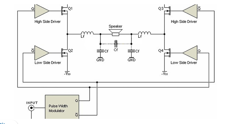 Để hiểu rõ hơn về cách hoạt động của mạch công suất class TD, tham khảo sơ đồ sau: