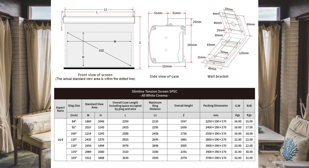 Thông tin chi tiết của Màn chiếu điện Tab-tensioned Vividstorm VMSLWA120H
