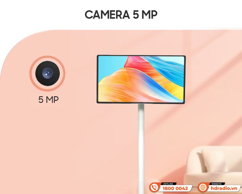 Màn hình cảm ứng Himedia M22 được tích hợp camera trước 5MP, phục vụ các nhu cầu gọi video, học trực tuyến, họp qua Zoom/Google Meet hoặc livestream bán hàng. Đây là điểm cộng lớn với những người làm nội dung online hay muốn tương tác trực tiếp với khách hàng.