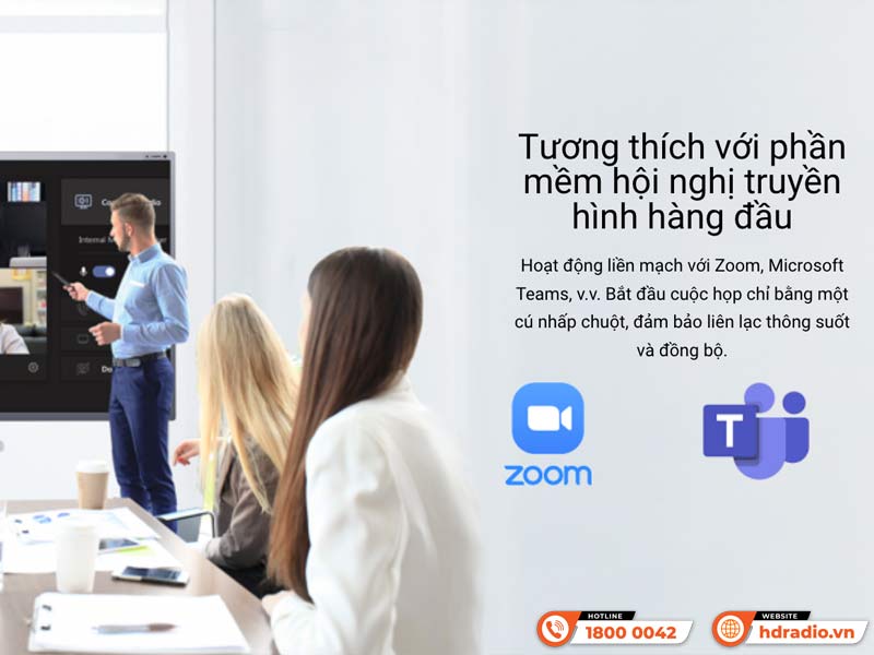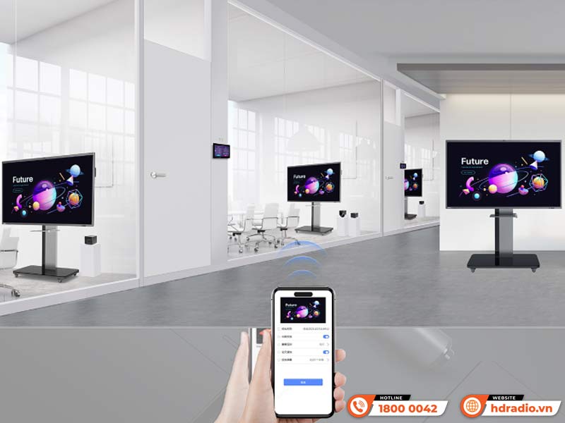 Điều khiển thiết bị, quản lý cuộc họp và truyền phát thông tin được kết hợp. Bạn có thể bật hoặc tắt thiết bị từ xa, gửi thông báo và phát tin nhắn, dễ dàng đồng bộ hóa tất cả các màn hình phẳng tương tác.