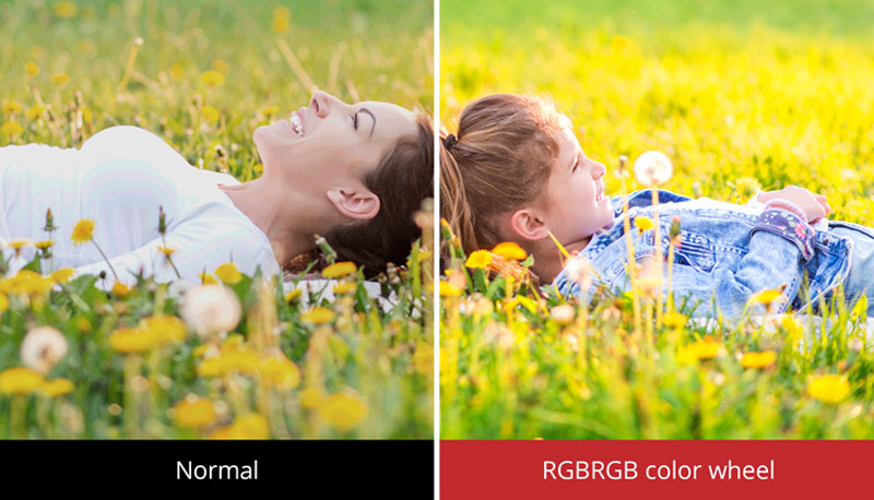 Bảng màu RGBRGB chuyên dụng của Máy chiếu ViewSonic PX727 giúp tăng cường màu đỏ, xanh da trời và xanh lá cây, đồng thời cũng tập trung vào màu sắc và tăng cường độ bão hòa để chiếu hình ảnh với sự chuyển màu mượt mà.