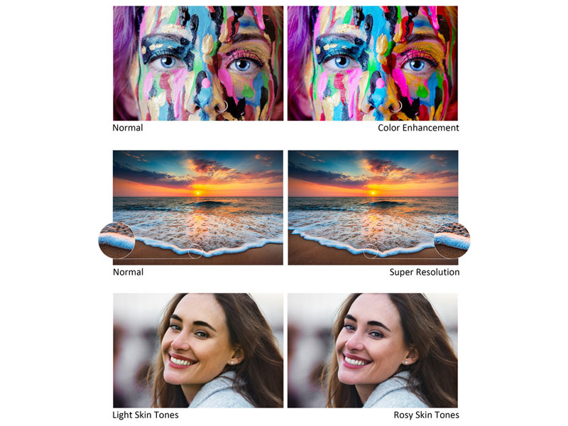 - Bộ xử lý hình ảnh nâng cao với: Giải pháp tối ưu /Màu da/Tăng cường màu sắc.