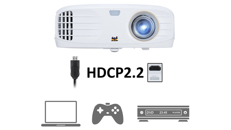 Tận hưởng nội dung 4K thực trên màn hình lớn với cổng HDMI 2.0 hỗ trợ HDCP 2.2. HDCP 2.2 của Máy chiêu 4k ViewSonic PX727 cho phép bạn thưởng thức nội dung 4K UHD chân thật từ các thiết bị như hộp phát trực tuyến và đầu phát Blu-ray 4K UHD thế hệ mới yêu cầu tương thích HDCP 2.2 để chuyển tín hiệu 4K sang máy chiếu 4K UHD.