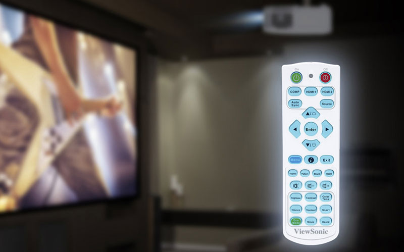 Máy chiếu 4K ViewSonic PX727 có trang bị điều khiển từ xa nhỏ gọn đi kèm giúp cho việc điều chỉnh trở lên dễ dàng