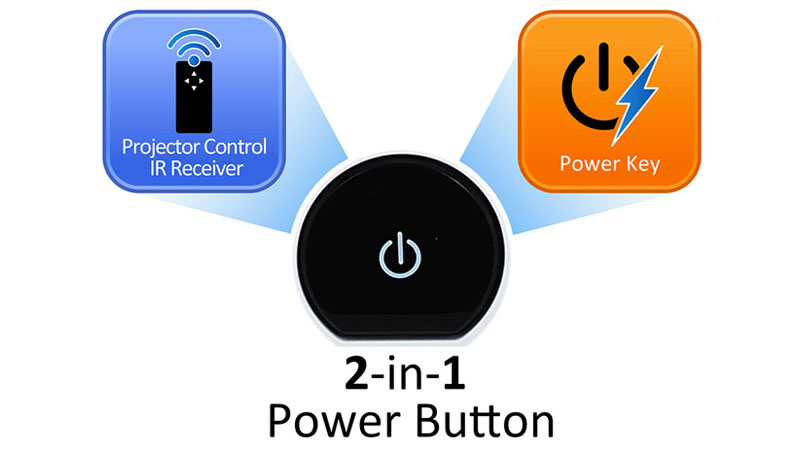 Nút nguồn của Máy chiêu ViewSonic PX727 nằm ở vị trí trung tâm vừa bật tắt nguồn để bạn dễ dàng kiểm soát trạng thái của máy chiếu và cũng là bộ thu IR để giúp các bạn dễ dàng quản lý máy chiếu thuận tiện.