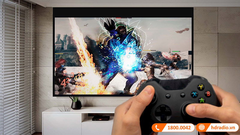 Khi bạn chơi game chiếu Optoma UHD55 giúp bạn tận hưởng chuyển động mượt mà và giảm bóng ma. Theo dõi hành động dễ dàng hơn, cơ hội bắn trúng mục tiêu sớm hơn với tốc độ làm mới cao. Đây là một sự lựa chọn lý tưởng cho dòng game hành động nhanh.