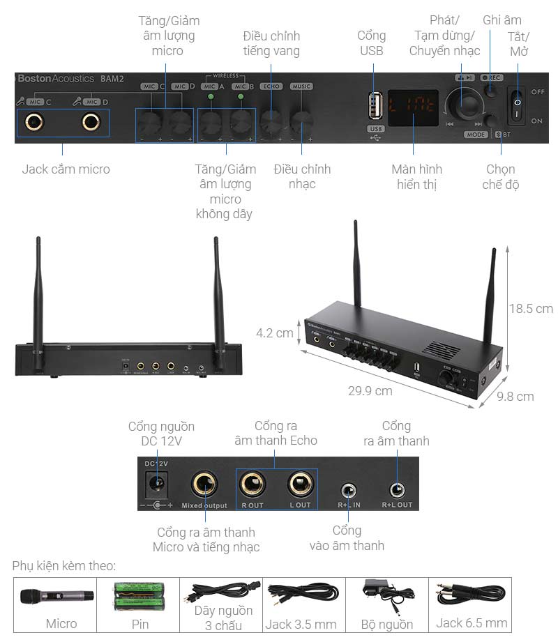 Micro không dây Boston BAM2, Tích hợp Echo, Bluetooth Micro không dây Boston BAM2, Tích hợp Echo, Bluetooth