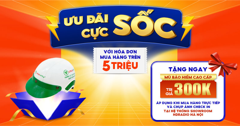 Chính thức từ ngày 1/7/2024, HDRadio tung ra chương trình ưu đãi rất hấp dẫn: Khi Quý khách mua hàng trực tiếp tại 1 trong 4 showroom của HDRadio HÀ NỘI với hóa đơn trên 5.000.000đ sẽ được tặng ngay MŨ BẢO HIỂM trị giá 300.000đĐây là phần quà tuyệt vời mà công ty muốn cảm ơn tới quý khách hàng đã tin tưởng, mua sắm tại HDRadio trong suốt thời gian vừa qua.