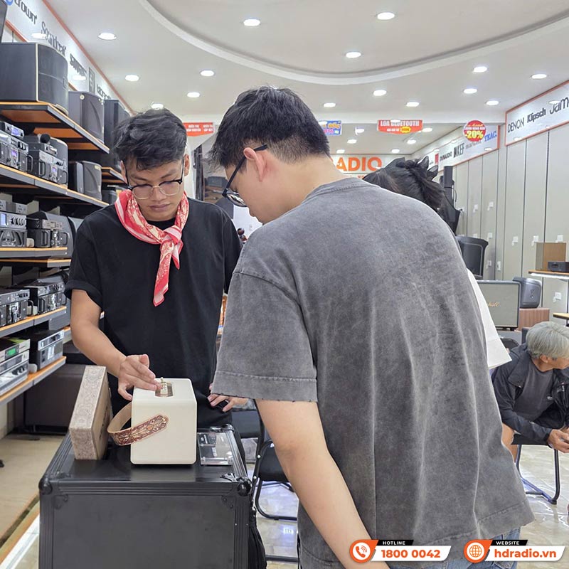 Hình ảnh khách hàng qua trải nghiệmvà chọn mua loa marshall mới tại Showroom HDRadio Quận 7
