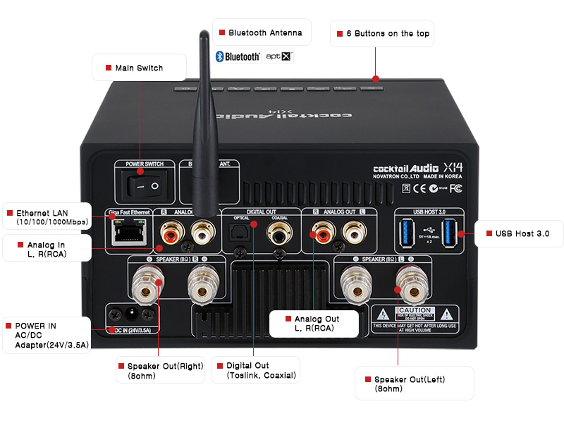 Thông sỗ kỹ thuật Music server + DAC + Amply Cocktail X14