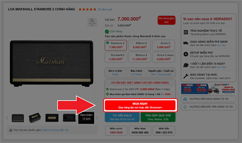 Sau khi chọn được sản phẩm, quý khách hàng vui lòng liên hệ Hotline 1800.0042 (miễn phí cước) để đặt hàng qua hình thưc trả tiền trước, chuyên viên bán hàng của HDRADIO sẽ cung cấp số tài khoản công ty để khách hàng chuyển tiền trước, sau đó HDRADIO sẽ giao hàng MIỄN PHÍ theo hóa đơn bán hàng mới được lập.